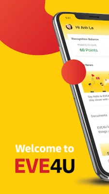 EVE4U là ứng dụng được cung cấp bởi EveHR nền tảng Phúc lợi và Khen thưởng nhân viên hàng đầu Việt Nam, giúp doanh nghiệp tạo động lực cho nhân viên nhằm tăng mức độ gắn kết của tổ chức một cách dễ dàng, nhanh chóng và hiệu quả.