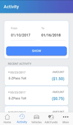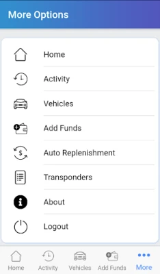* Add money to your account * Check your balance * Edit registered vehicles * View your toll history * View active transponders