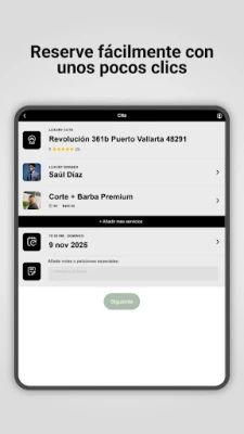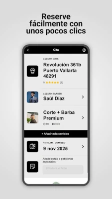 Características: - Reserva rápida y sin llamadas. - Perfiles de barberos con fotos y reseñas. - Promociones y servicios premium exclusivos. - Historial de visitas y recomendaciones personalizadas. - Confirmaciones y notificaciones en tiempo real. Luxury Cuts App – Donde la puntualidad y el estilo se encuentran.