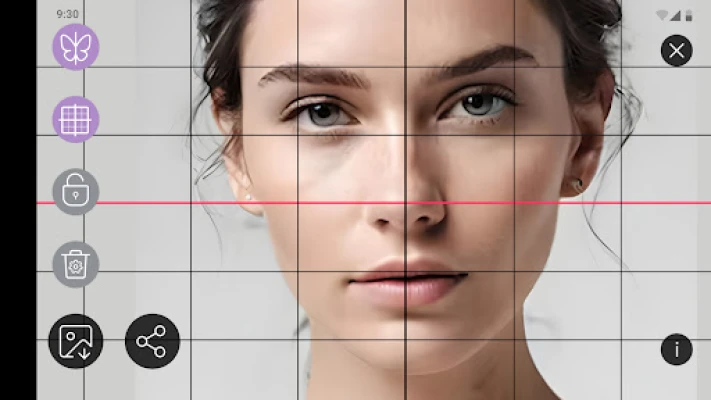 Facial symmetry check: Detects key points and builds guides for precise work.