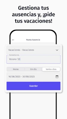 ✔ Solicitar ausencias, vacaciones o permisos laborales.