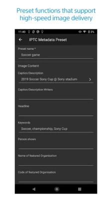 ・Up to 50 IPTC metadata presets can be registered. As the appropriate IPTC metadata can be immediately called out according to the subject