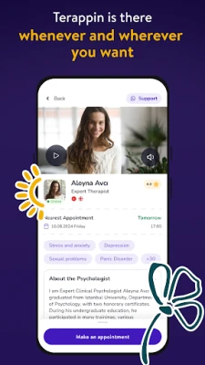 Terappin is an online therapy application where you can get an online psychologist and psychological counseling services. Thanks to Terappin, you can reach a peaceful mind by releasing depression, anxiety, stress, and other mental health issues by matching the most suitable therapist for you. With the Terappin application, which offers 24/7 online therapy, you can take a step into a therapy journey with psychologists who are specialists in their fields.