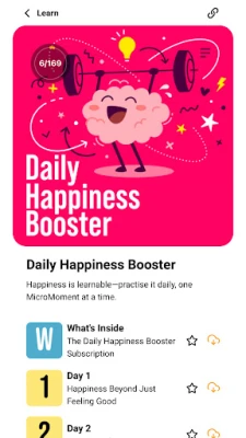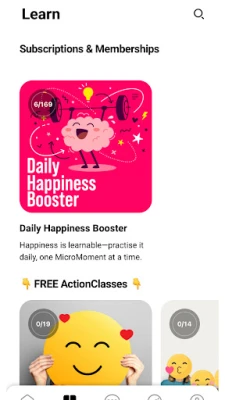 Daily Happiness Boosters (paid monthly subscription): Start each day with bite-sized joy: a mindful quote, a micro-action, and a moment of reflection—all in under a minute. Small shifts. Big impact.