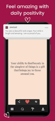 Unique is more than just a positivity app – it's your personal self-esteem booster, self-care companion, and daily dose of motivation, all wrapped in a beautifully designed experience.