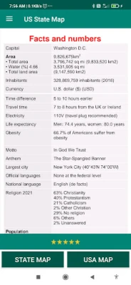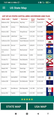 US States map contains information about all 50 US states, capitals, the state flag, and wiki links to know more about the state.